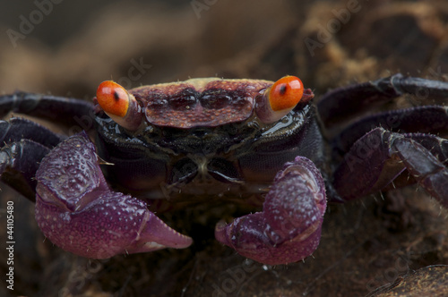 Purple Land Crab Gecarcoidea lalandii. This freshwater crab belongs to the genus Geosesarma which is native to Malaysia and Indonesia and includes 59 different species. Rainbow Vampire Crab Geosesarma cf.